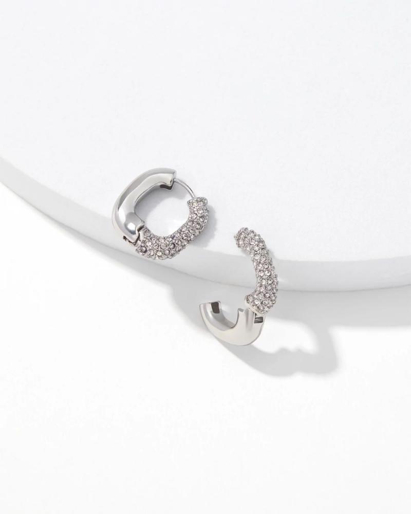 White House Black Market Jewelry | Womens Silver + Pave Square Hoop Earrings Silver